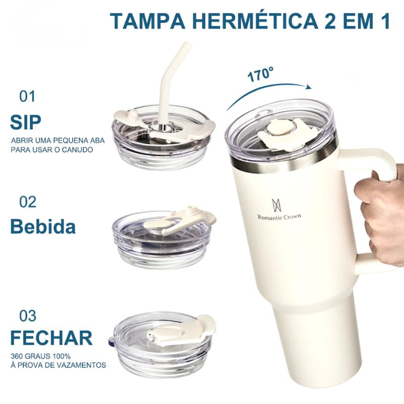O copo térmico definitivo para quem busca praticidade, hidratação e alta durabilidade.