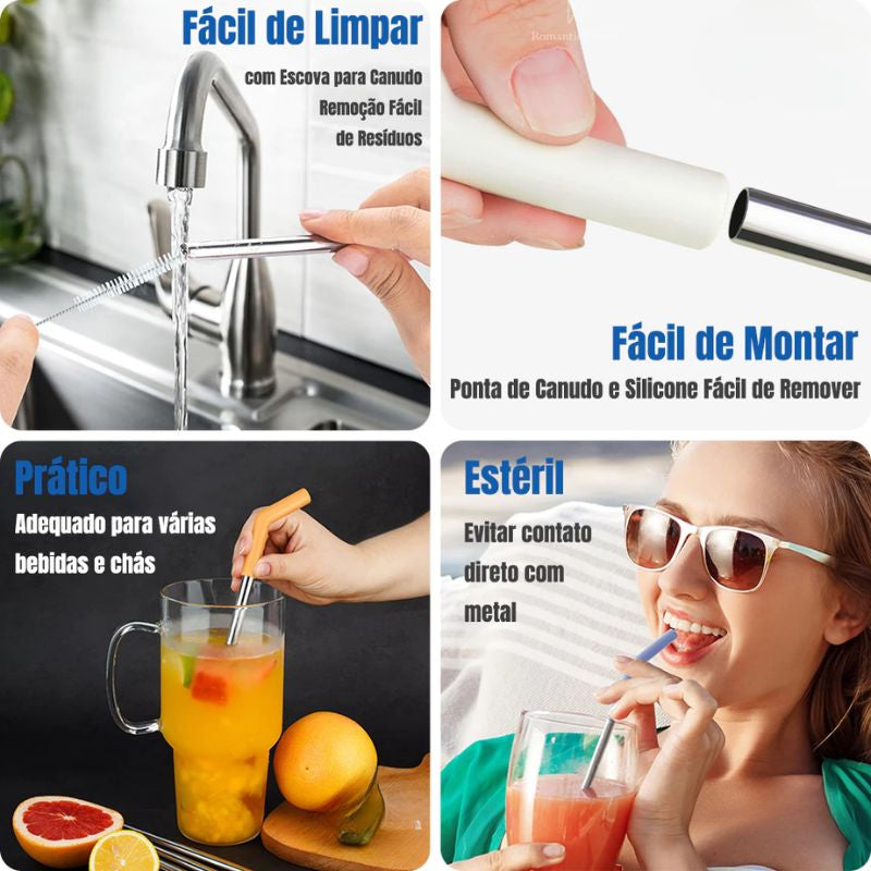 • Canudo de aço inox com capinha de silicone