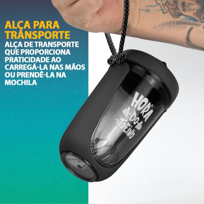Com design esportivo e construção robusta, a PowerMix garante praticidade para misturar suplementos, preparar bebidas rápidas e manter sua hidratação sempre à mão.