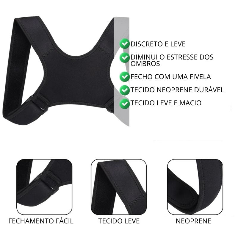 Produzido em neoprene leve e flexível, o PostureFlex proporciona firmeza na região dos ombros e parte superior das costas, incentivando naturalmente uma postura mais alinhada. Seu sistema ajustável permite adaptação ao corpo, oferecendo segurança e conforto durante o uso diário.